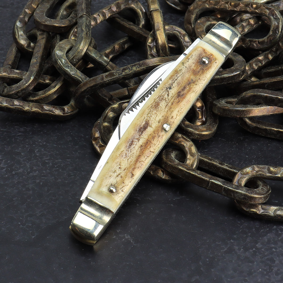 Altes Carl Schlieper "Eye Brand" 2tlg Congress Knife Taschenmesser mit Hirschhorn