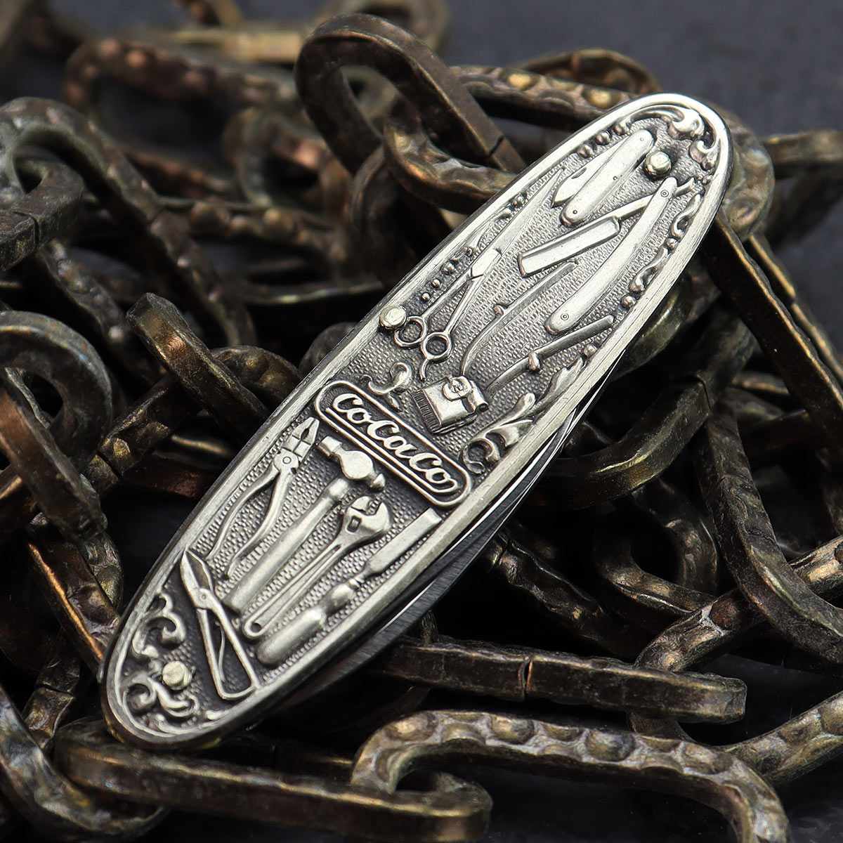 Besonderheit - Carl Schlieper altes Herrenmesser "Chuchillos/Werkzeug" Prägeschale