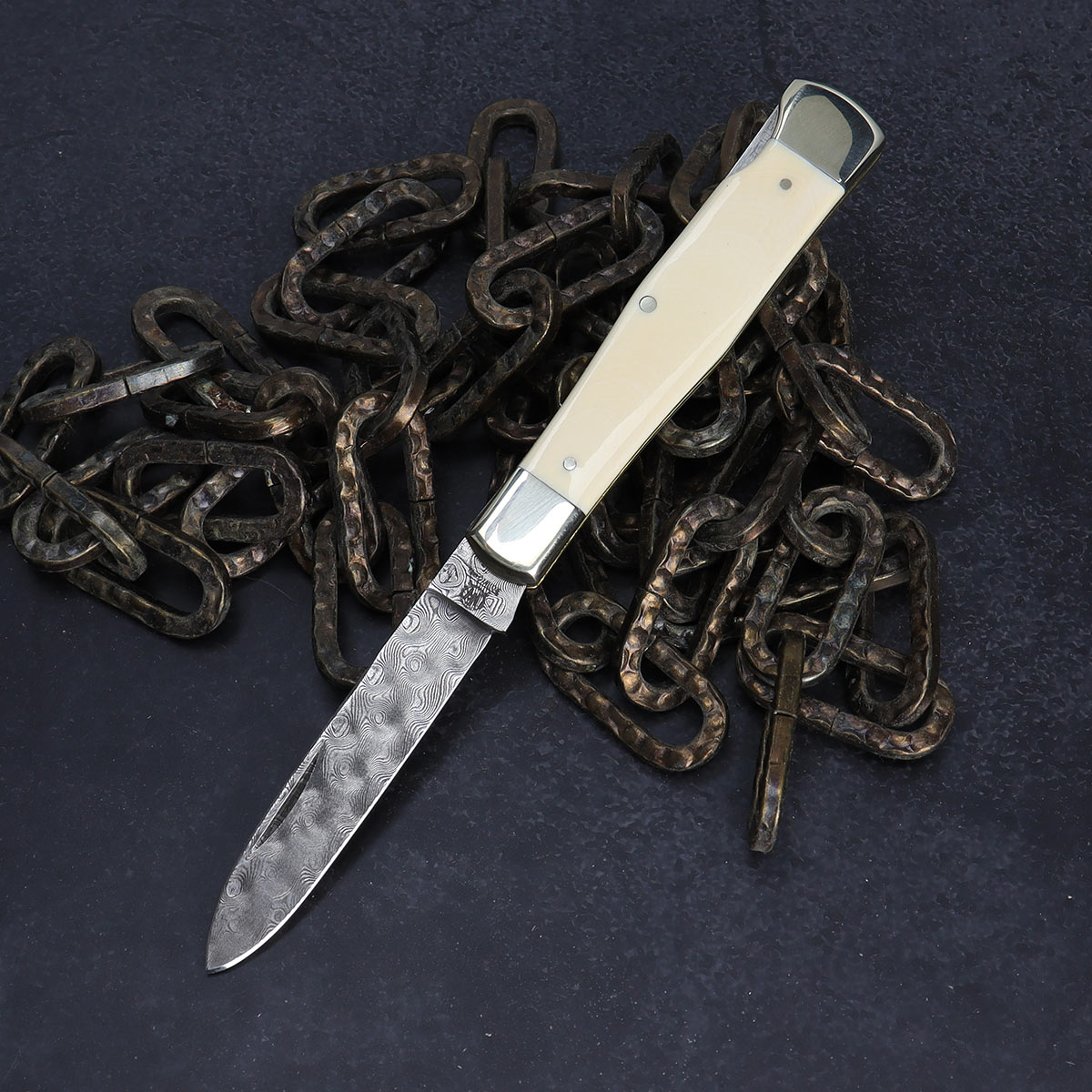 Hartkopf Taschenmesser 300-Lagen Balbach Damast Griff Elfenbein - B Ware